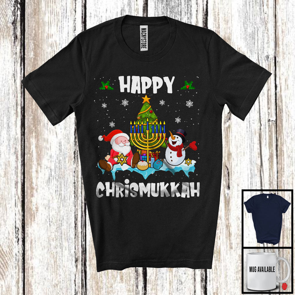 Happy Chrismukkah; Adorable Christmas Tree Hanukkah Menorah Snowman; Snow Family T-Shirt