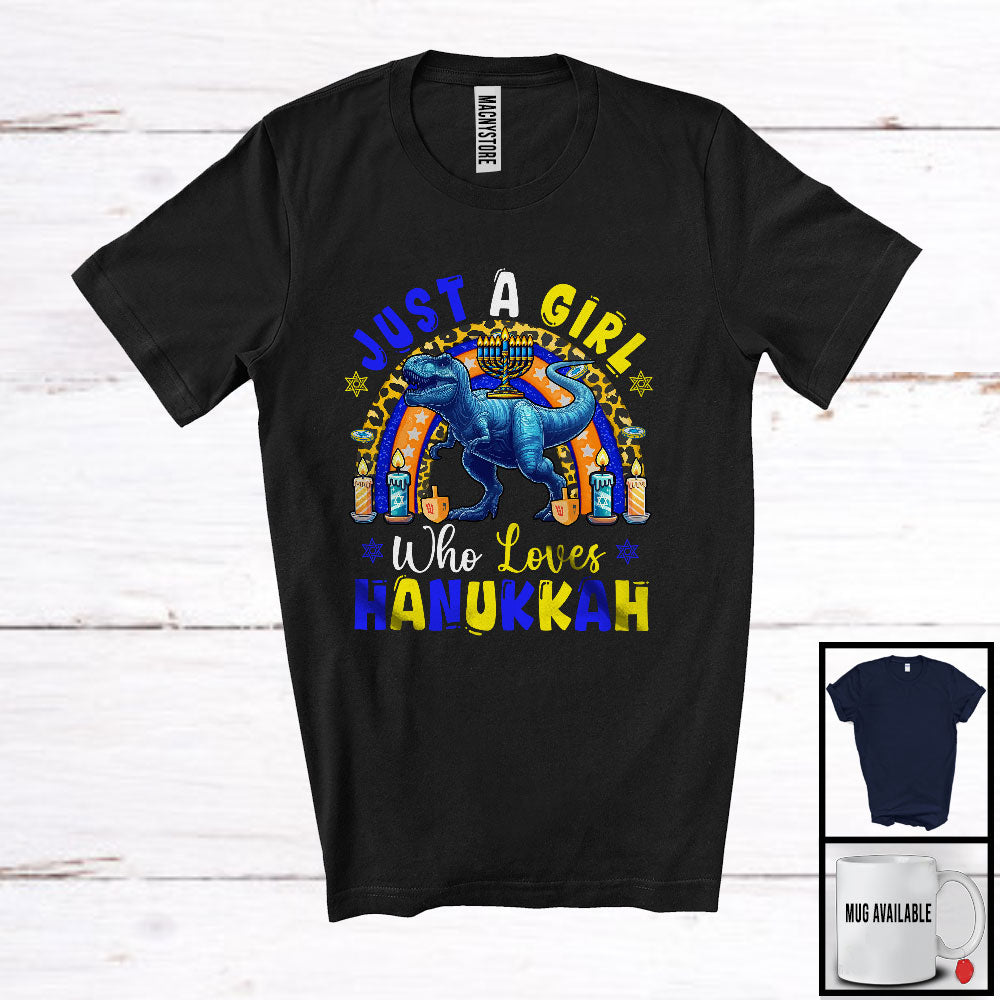 Just A Girl Who Loves Hanukkah; Wonderful Hanukkah Menorah Lights T-Rex; Leopard Rainbow T-Shirt