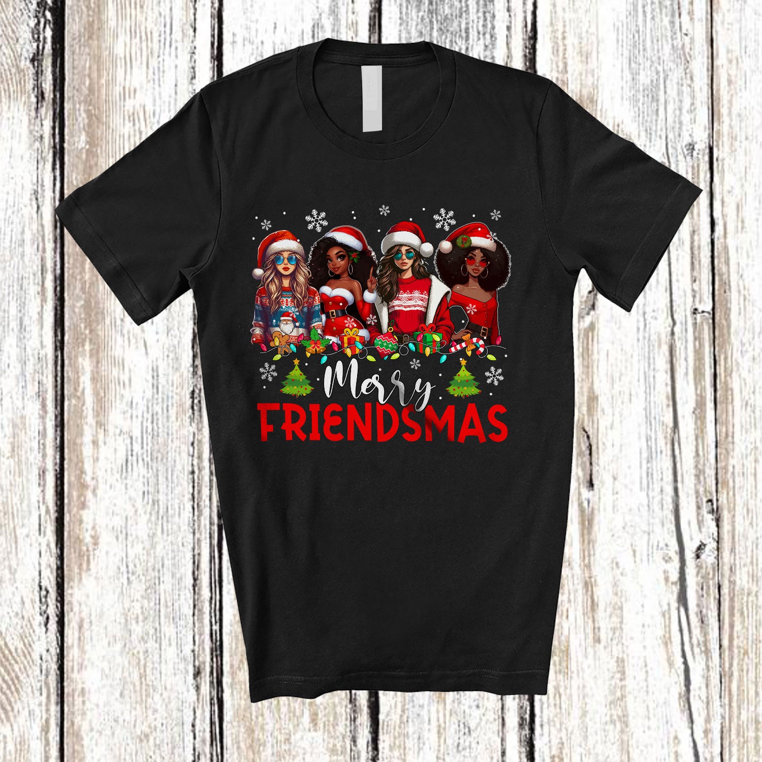 This Merry Friendsmas; Adorable Christmas Lights Santa African American Women; Friends Group.png T-Shirt is great idea gift for your family, friends in this birthday, christmas, mother's day, father's day, patrick's day or any holiday.