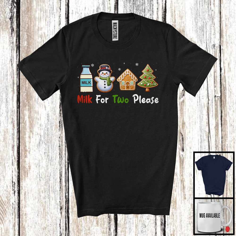 Milk For Two Please; Lovely Christmas Snowman; Pregnancy Announcement Baking Baker T-Shirt. This cotton t-shirt is a durable staple product with a classic fit. One of the most popular items, it has a relaxed style made for everyday and casual wear.
