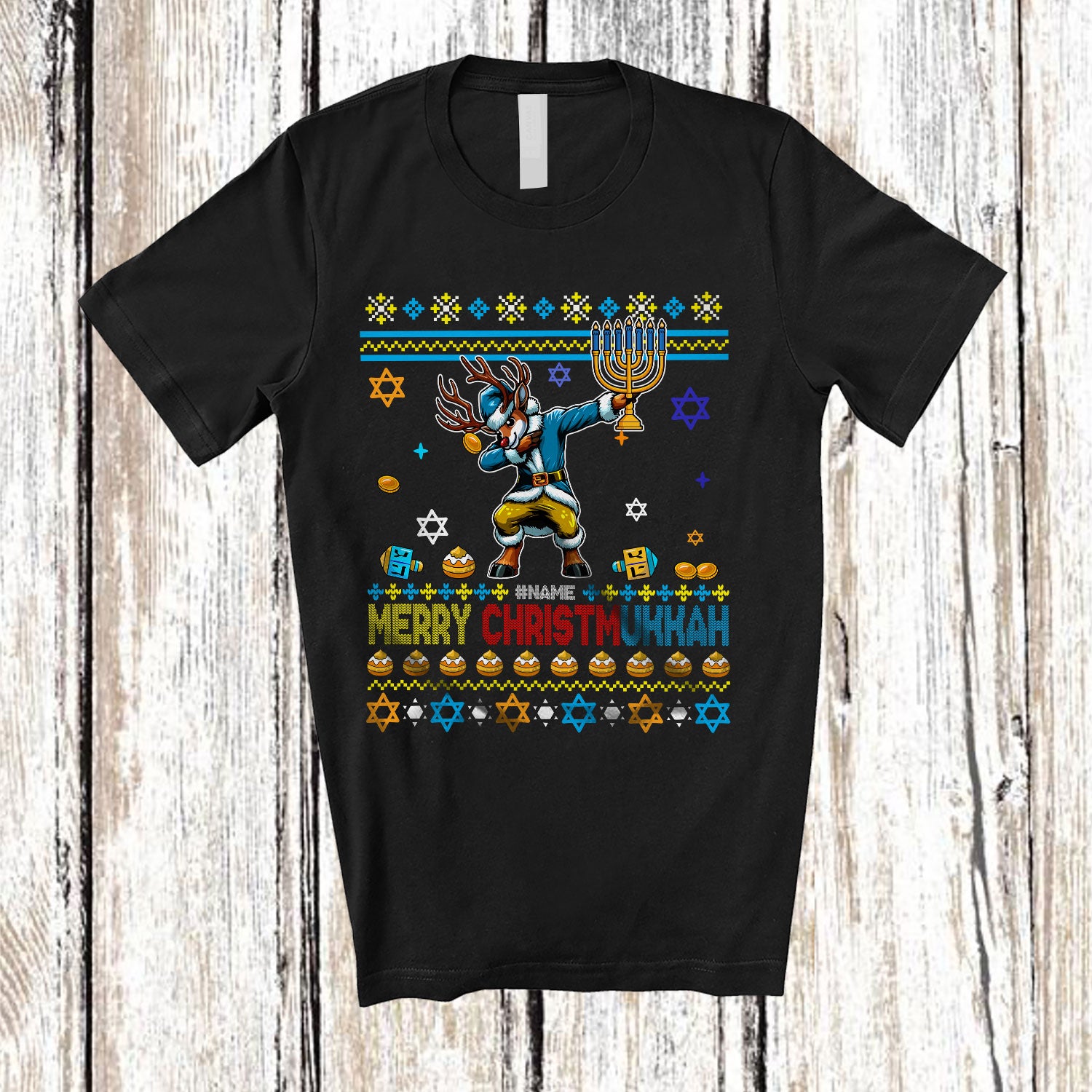 Personalized Custom Name Chrismukkah; Joyful Christmas Hanukkah Sweater Reindeer With Menorah T-Shirt
