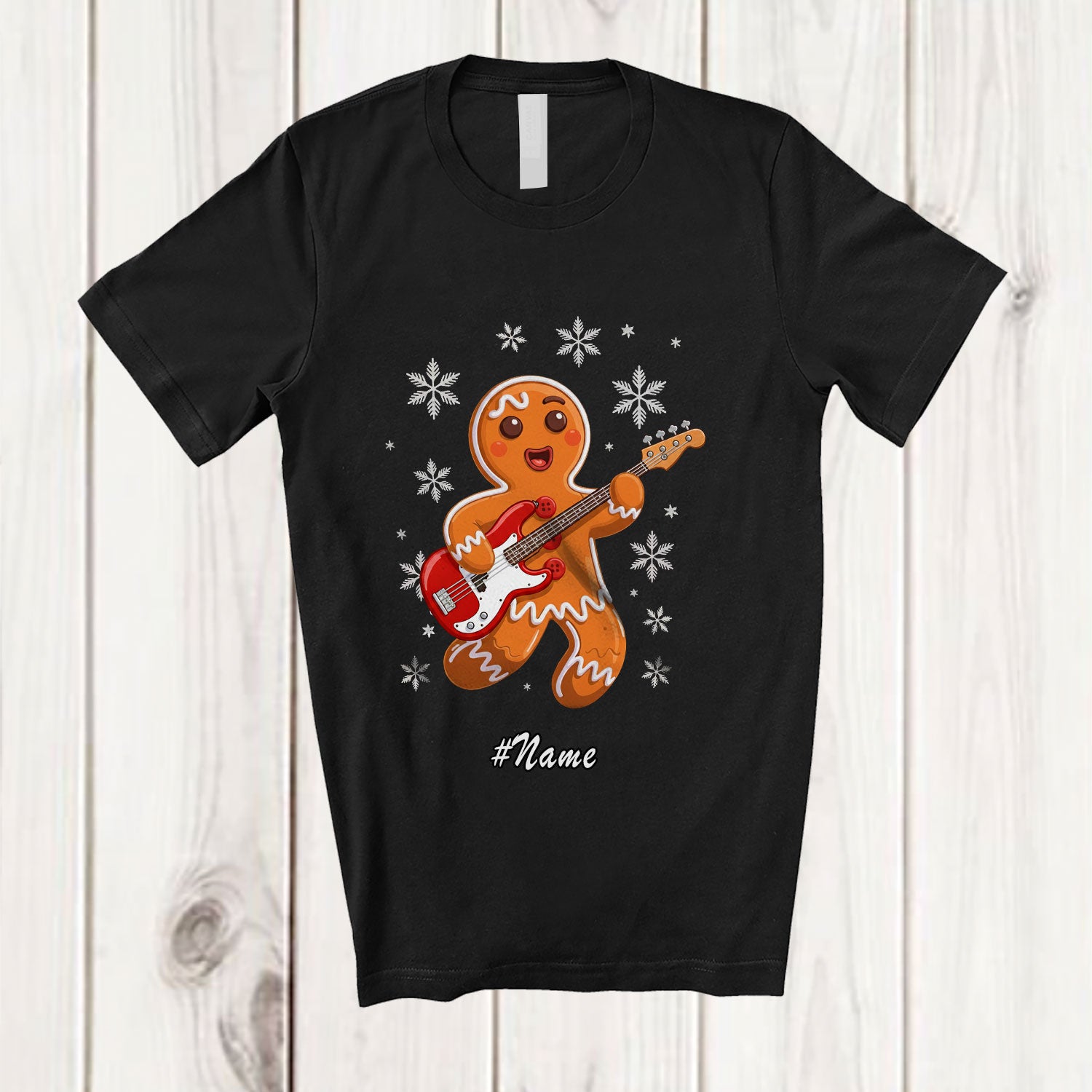 Personalized Custom Name Gingerbread Playing Guitar; Joyful Christmas Musical Instrument Players T-Shirt