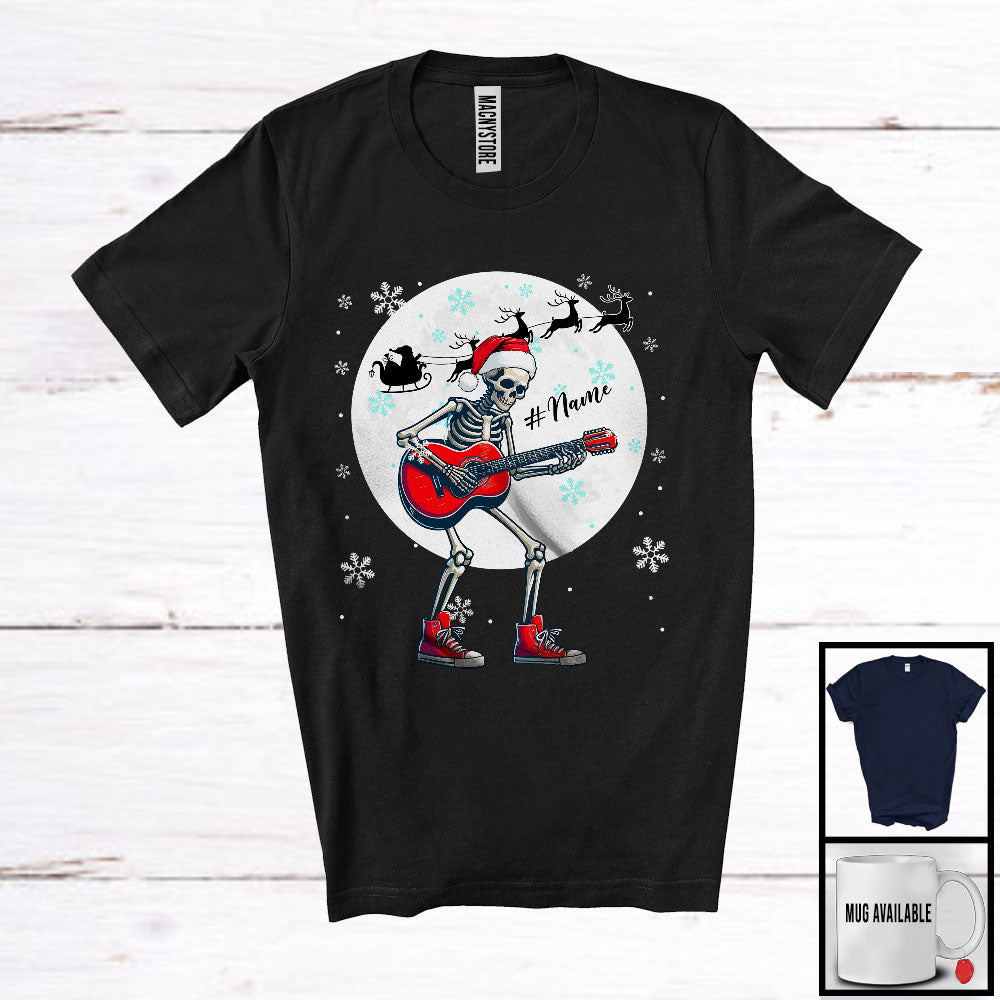 Personalized Custom Name Skeleton Guitar Player; Joyful Christmas Moon; Musical Instruments T-Shirt