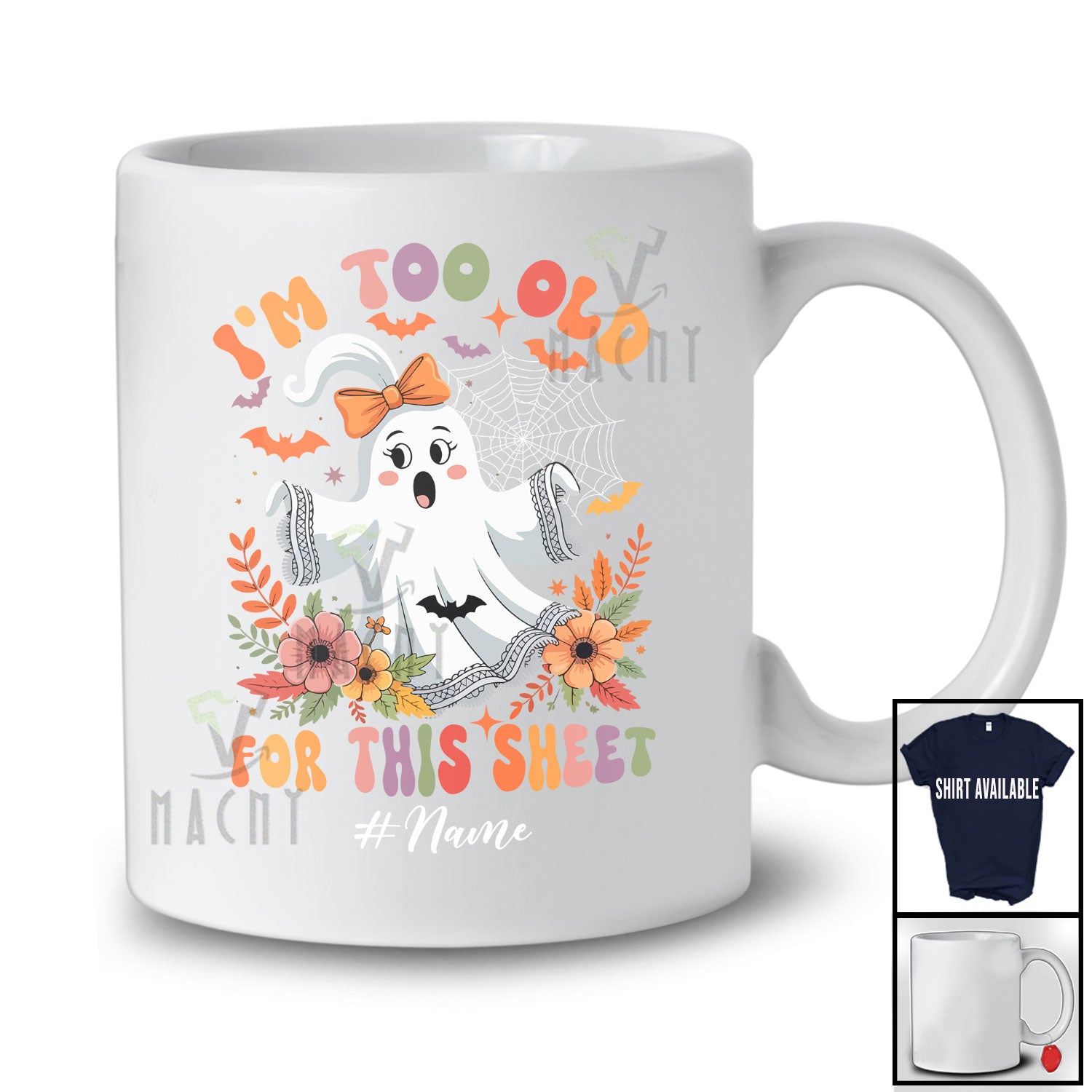 new MacnyStore - Personalized Custom Name Too Old For This Sheet; Lovely Halloween Boo Ghost; Women Flowers T-Shirt – Macnystore