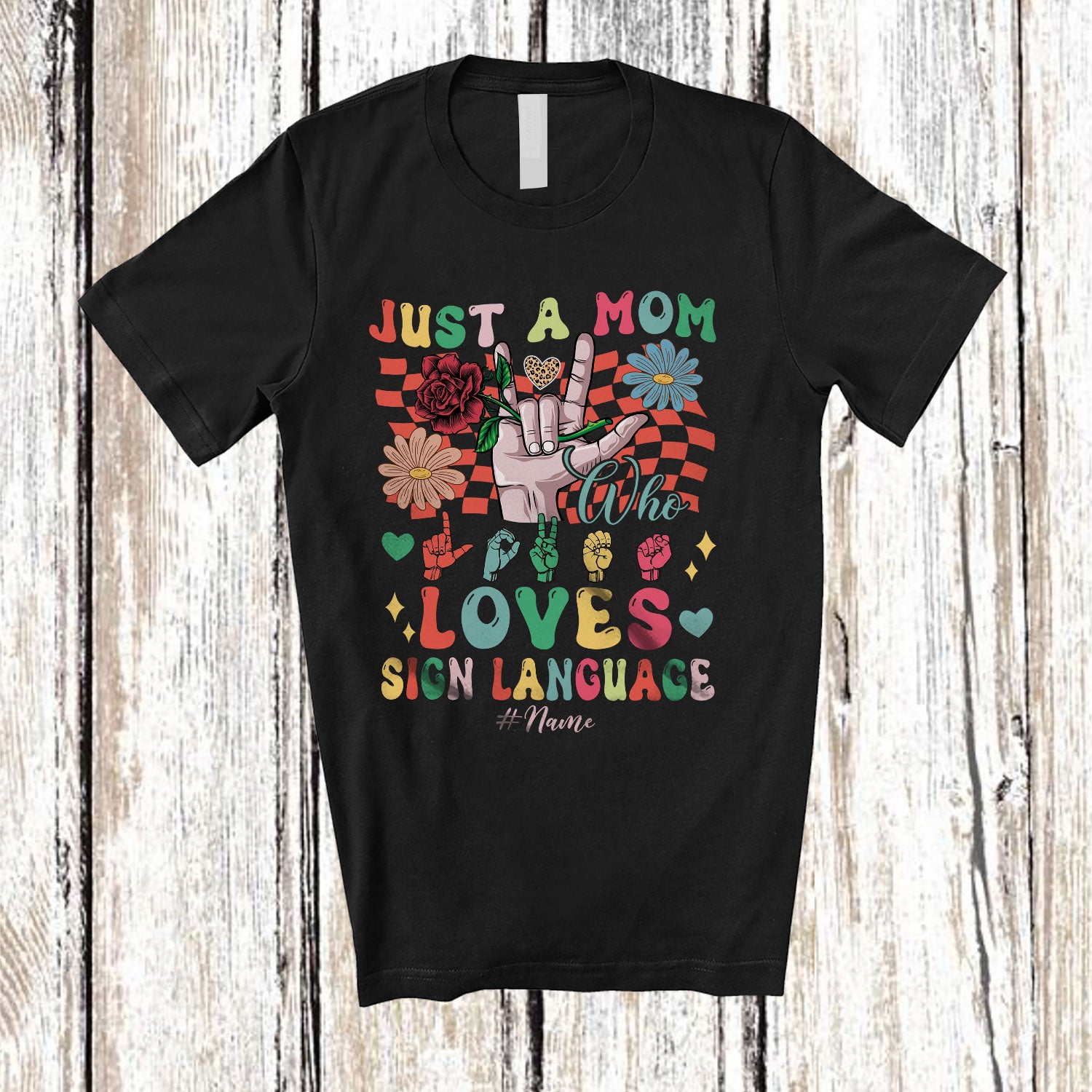 Personalized Just A Mom Who Loves Sign Language; Lovely Custom Name Women ASL; Family T-Shirt