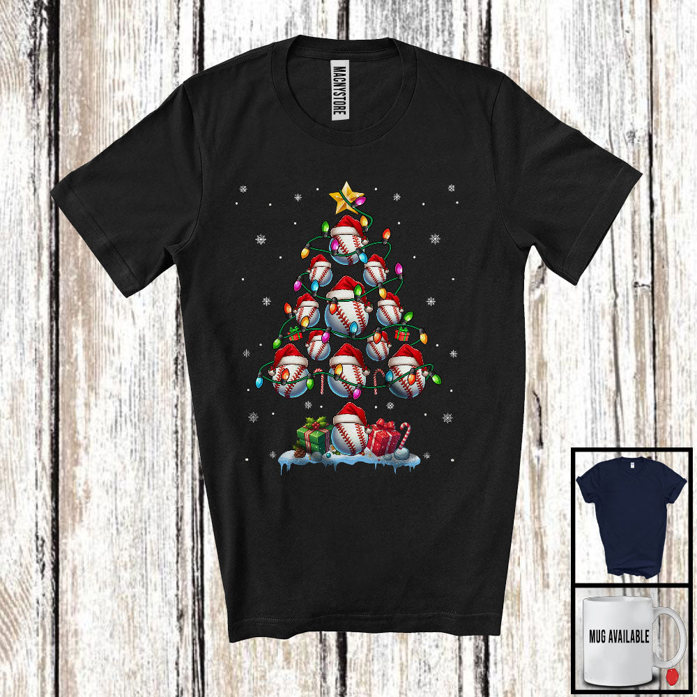 Santa Baseball Christmas Tree; Fantastic X-mas Lights Baseball Equipment Snow; Sport Player T-Shirt. This cotton t-shirt is a durable staple product with a classic fit. One of the most popular items, it has a relaxed style made for everyday and casual wear.