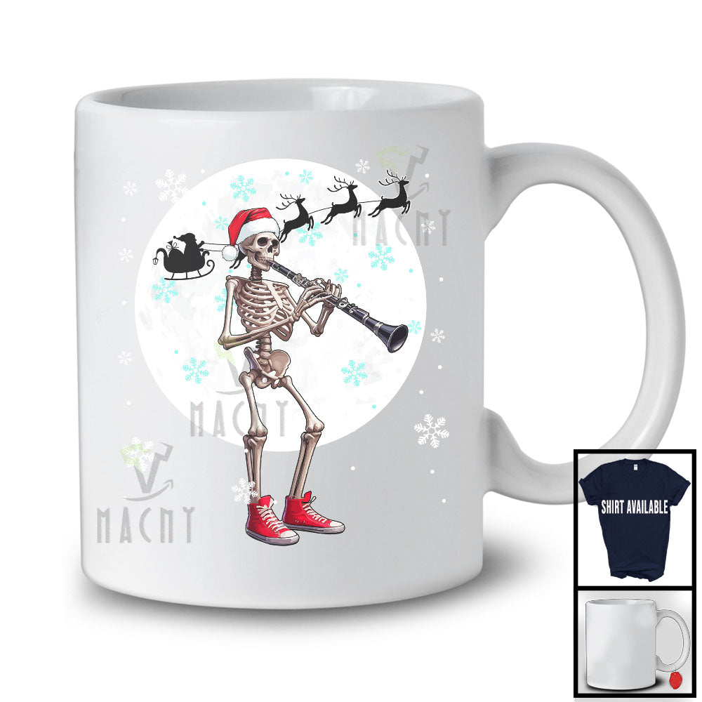 Santa Skeleton Playing Clarinet; Fantastic Christmas Moon Tree; Musical Instruments Player T-Shirt