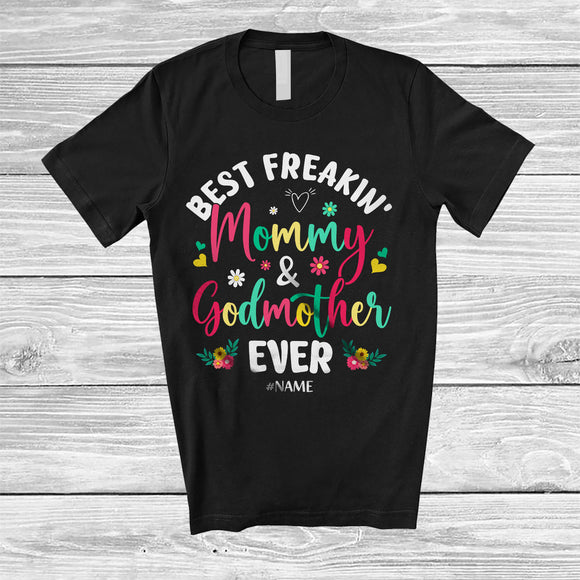 Personalized Custom Name Best Freakin' Mommy And Godmother Ever; Happy Mother's Day Floral T-Shirt