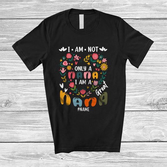 Personalized Custom Name Not Only Nana Great Nana; Lovely Mother's Day Flowers Heart T-Shirt