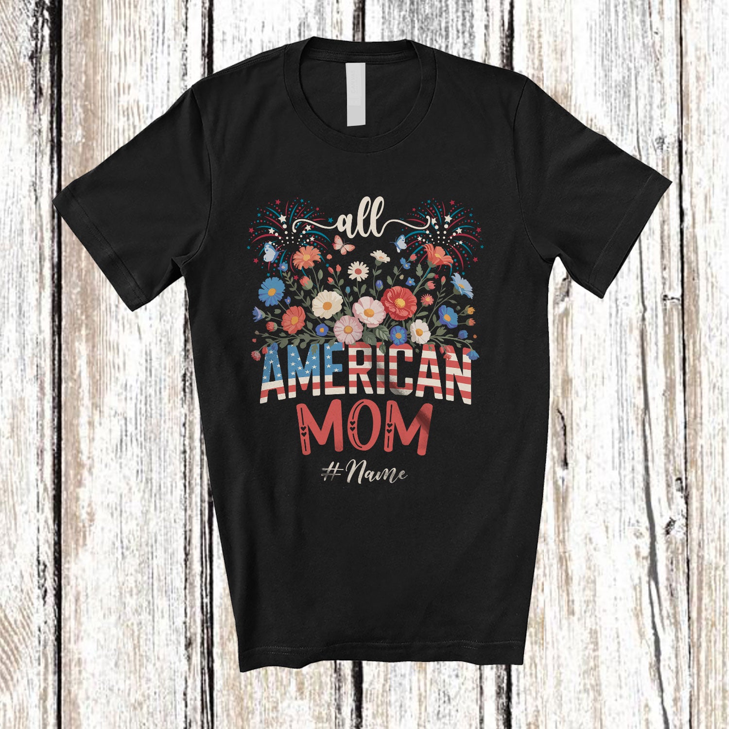 Personalized Custom Name All American Mom; Amusing 4th of July US Flag Patriotic Family T-Shirt