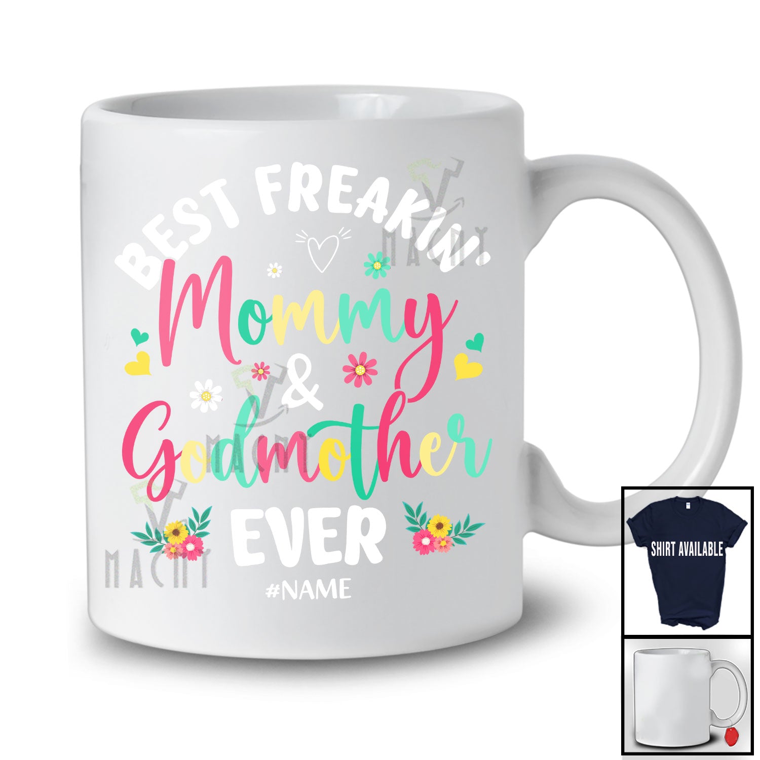 Personalized Custom Name Best Freakin' Mommy And Godmother Ever; Happy Mother's Day Floral T-Shirt