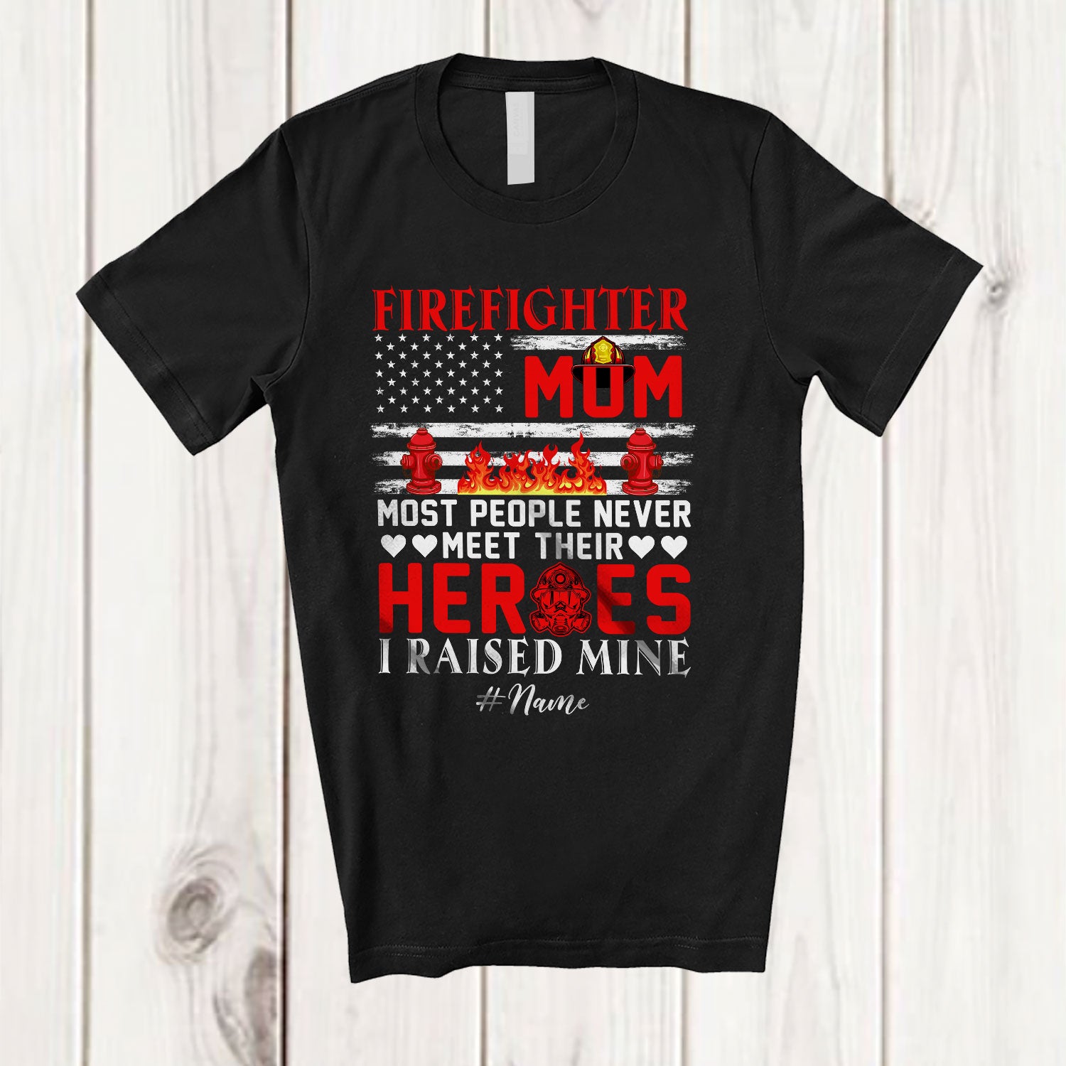 Personalized Custom Name Firefighter Mom I Raised Mine; Proud Mother's Day US Flag; Family T-Shirt