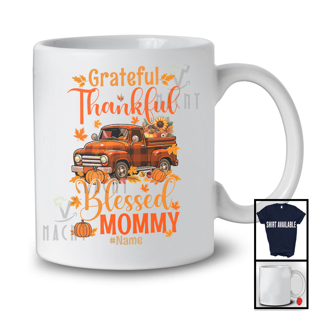 Personalized Custom Name Grateful Thankful Mommy; Lovely Thanksgiving Plaid Truck; Family T-Shirt