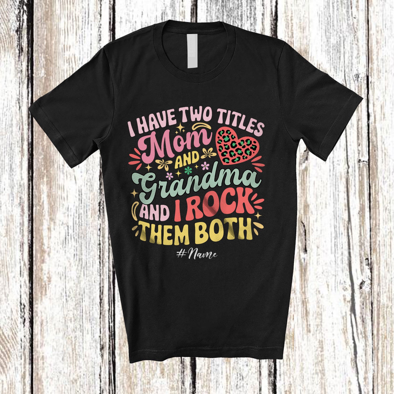 Personalized Custom Name I Have Two Titles Mom Grandma; Joyful Mother's Day Leopard Heart T-Shirt