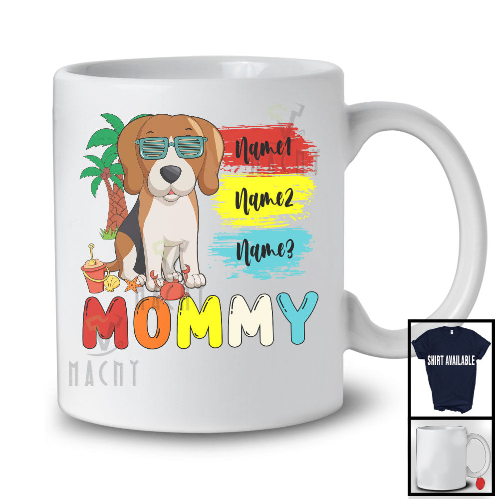 Personalized Custom Name Mommy, Cute Summer Vacation Beagle Sunglasses, Family Group T-Shirt. This cotton t-shirt is a durable staple product with a classic fit. One of the most popular items, it has a relaxed style made for everyday and casual wear.