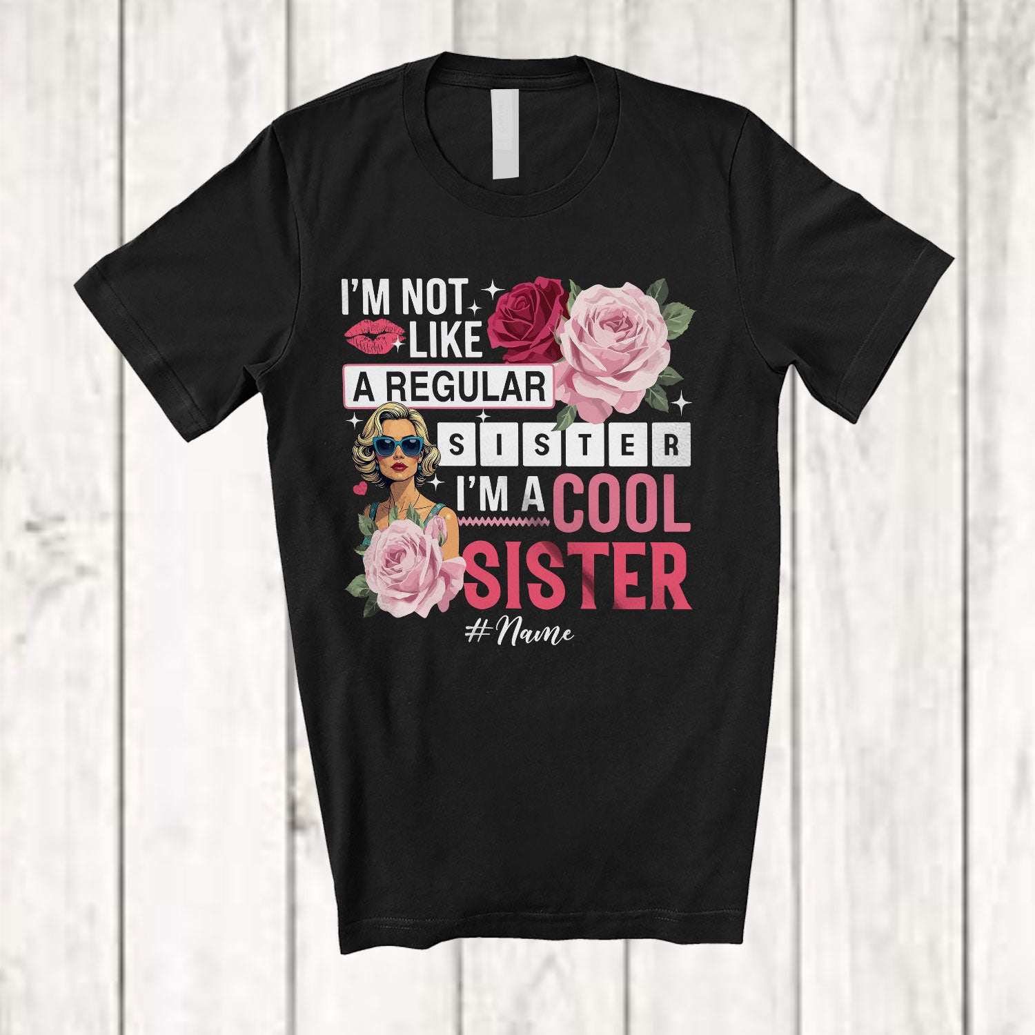 Personalized Custom Name Not Regular Sister I'm A Cool Sister; Joyful Mother's Day Flowers T-Shirt. This cotton t-shirt is a durable staple product with a classic fit. One of the most popular items, it has a relaxed style made for everyday and casual wear.