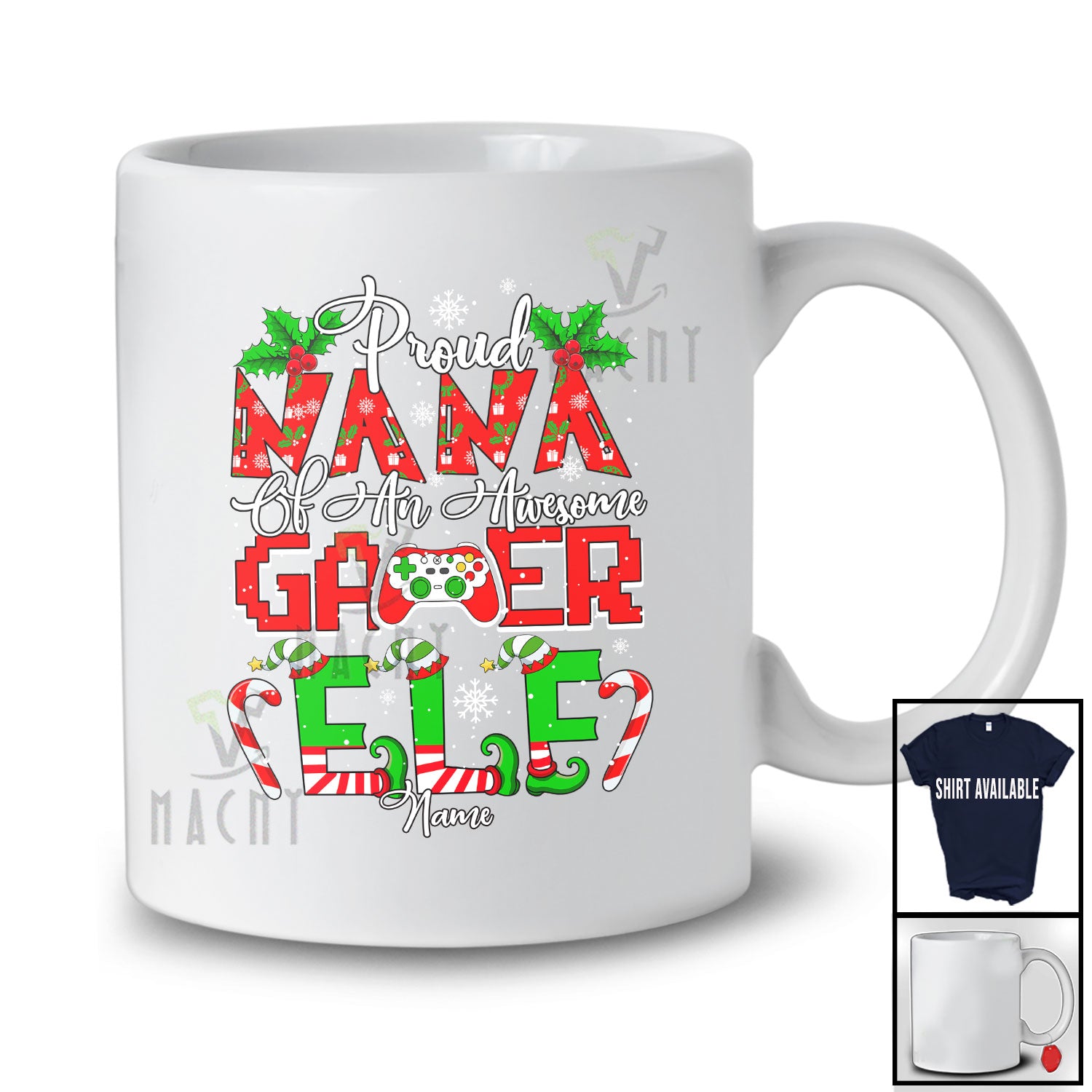 This Personalized Custom Name Proud Nana Of Gamer Elf; Joyful Christmas Mother's Day Family T-Shirt is great idea gift for your family, friends in this birthday, christmas, mother's day, father's day, patrick's day or any holiday.