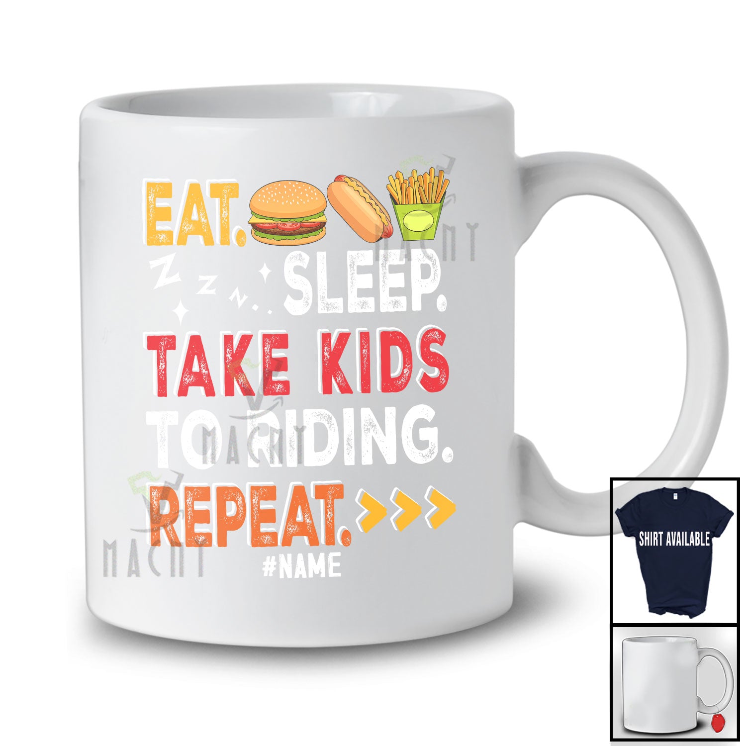 Personalized Eat Sleep Take Kids To Riding; Awesome Mother's Day Custom Name Player; Family T-Shirt. This cotton t-shirt is a durable staple product with a classic fit. One of the most popular items, it has a relaxed style made for everyday and casual wear.