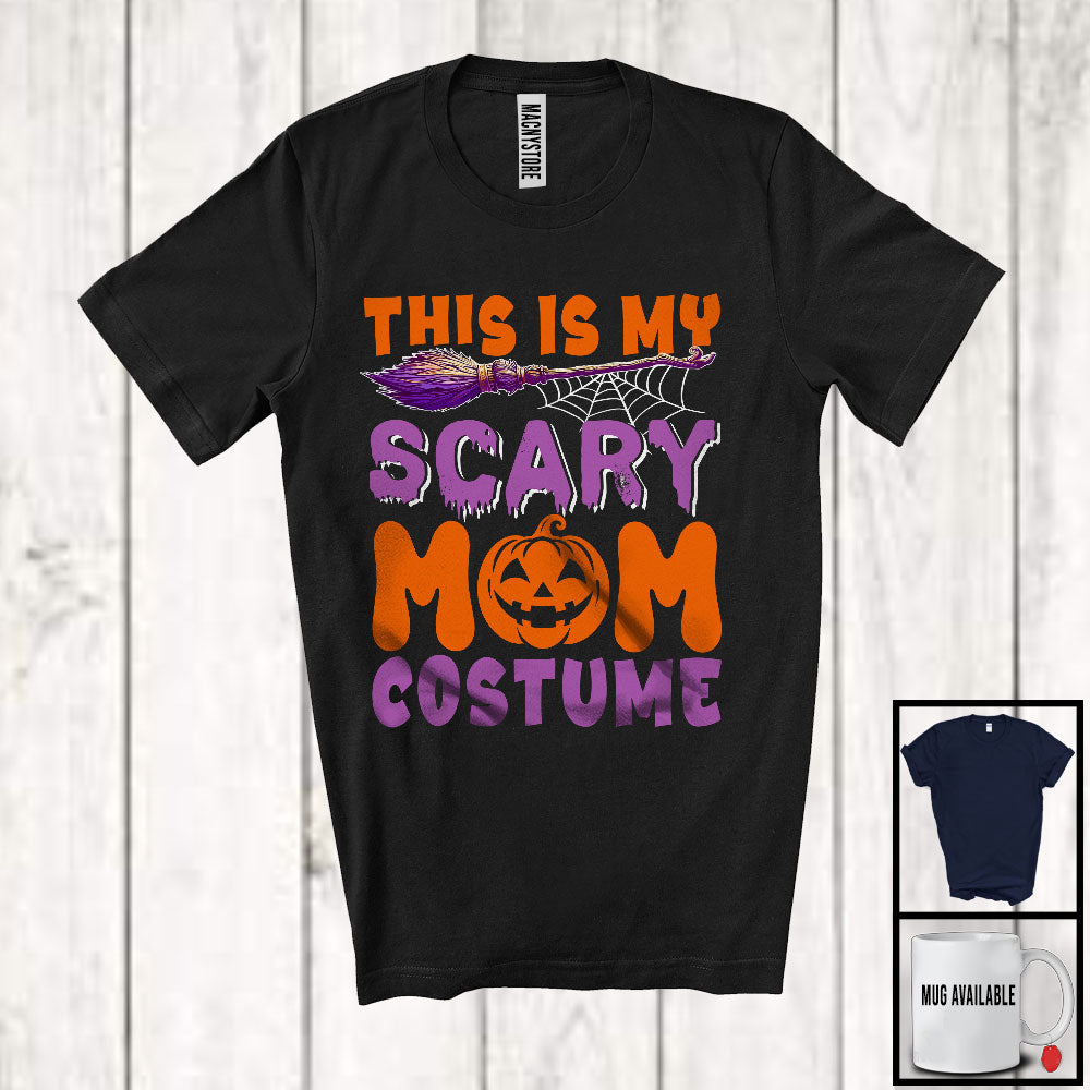 This Is My Scary Mom Costume; Awesome Halloween Witch Broomstick; Family Group T-Shirt. This cotton t-shirt is a durable staple product with a classic fit. One of the most popular items, it has a relaxed style made for everyday and casual wear.