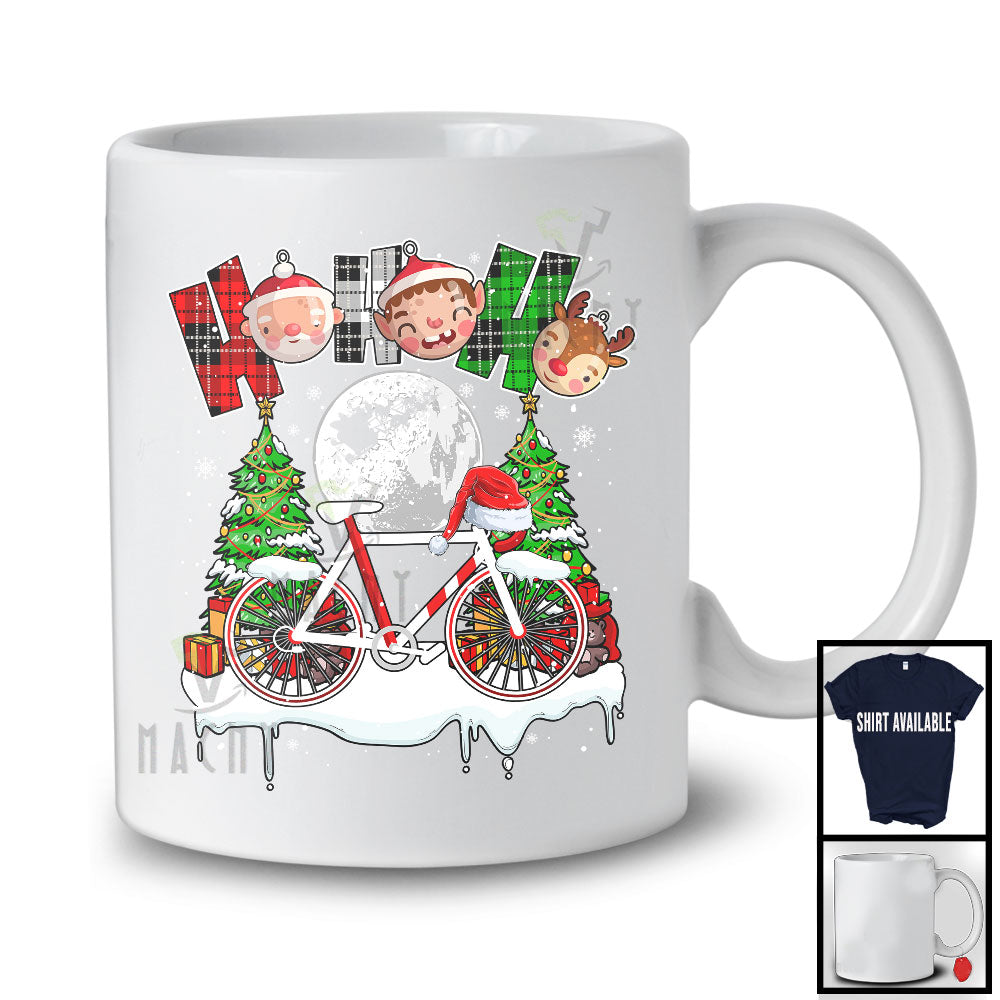 3Ho; Amazing Christmas Plaid Santa Driving Bicycle; X-mas Moon Tree Snowing T-Shirt. This cotton t-shirt is a durable staple product with a classic fit. One of the most popular items, it has a relaxed style made for everyday and casual wear.