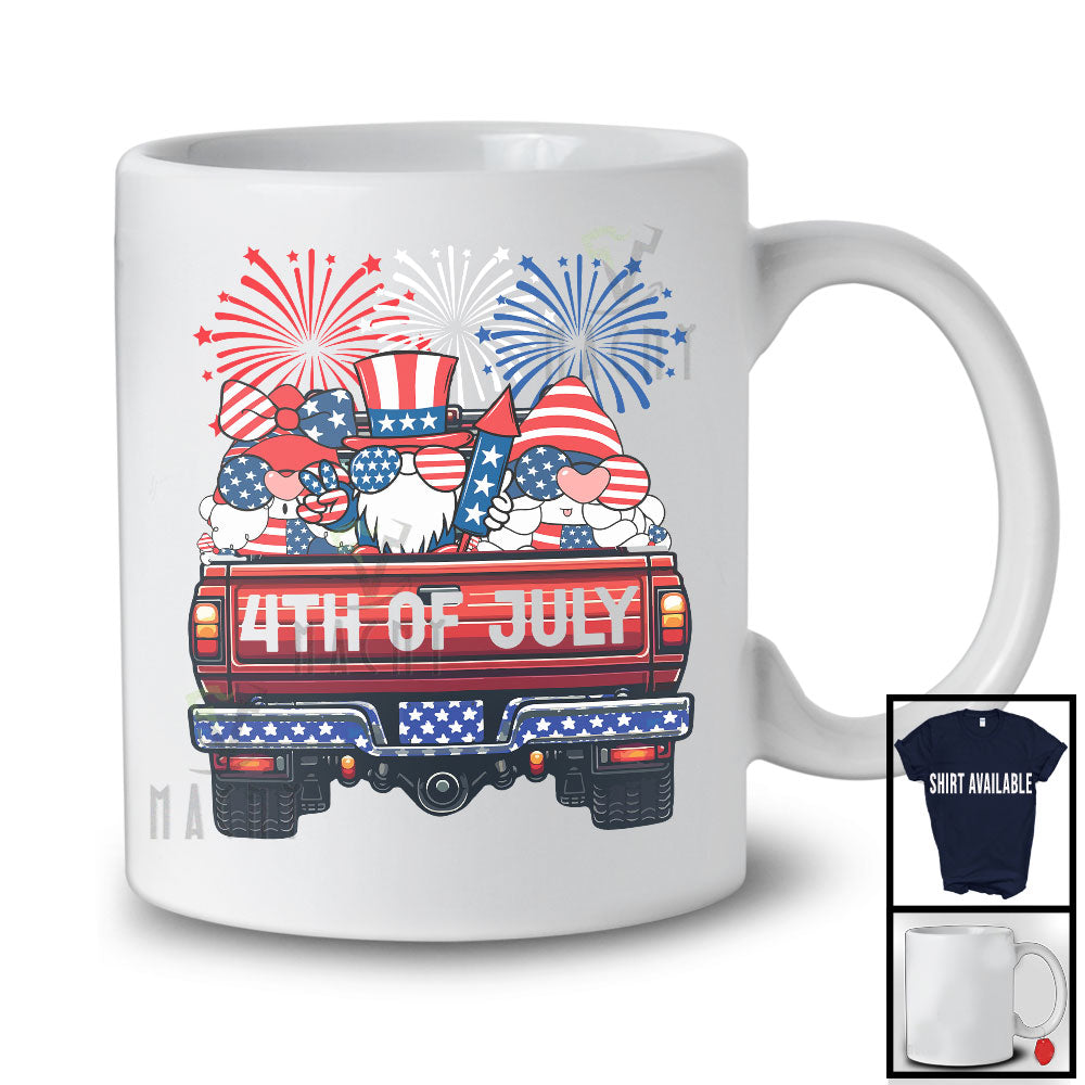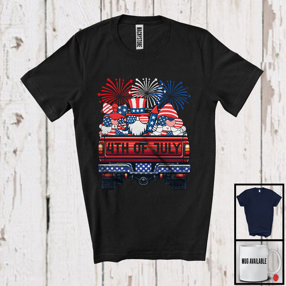 4th Of July, Lovely 4th Of July American Flag Gnomes On Truck, Fireworks Proud Patriotic T-Shirt
