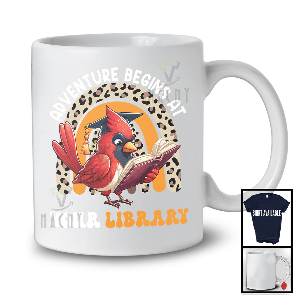 new MacnyStore - Adventure Begins At Your Library, Adorable Summer Cardinal Bird Reading Book, Leopard Rainbow T-Shirt – Macnystore