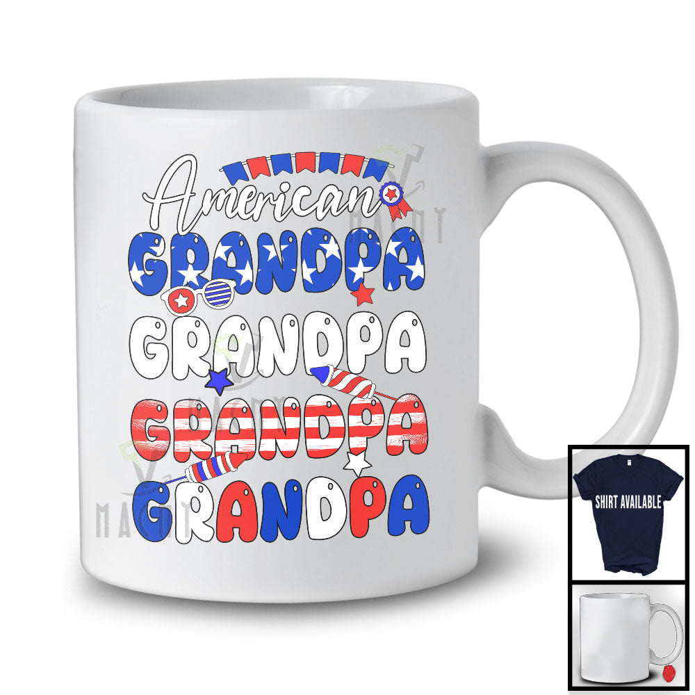 • American Grandpa, Proud 4th Of July Father's Day American Flag, Patriotic Family Group T-Shirt. This cotton t-shirt is a durable staple product with a classic fit. One of the most popular items, it has a relaxed style made for everyday and casual wear.