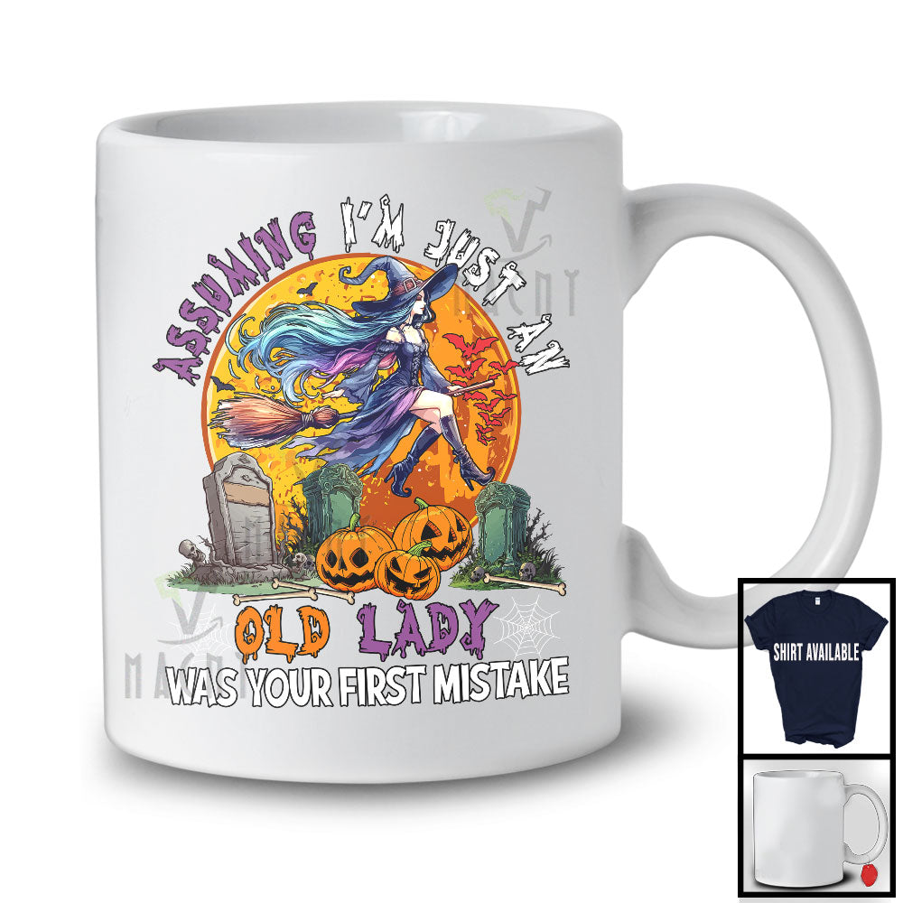 The Assuming I'm Just An Old Lady Was Your First Mistake; Scary Halloween Moon Witch Lover T-Shirt is evocative, to say the least, but that's why you're drawn to it in the first place.