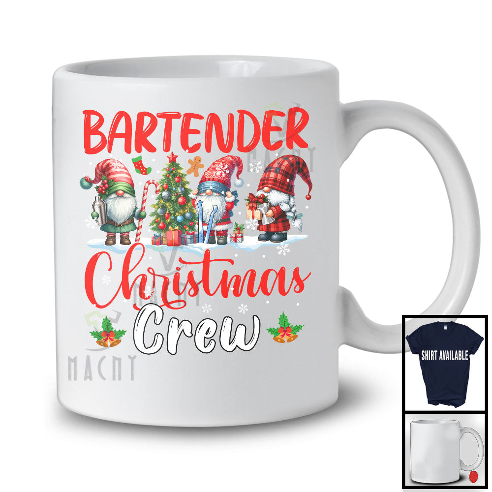 Bartender Christmas Crew; Adorable X-mas Tree Three Gnomes; Snowing Bartender Group T-Shirt