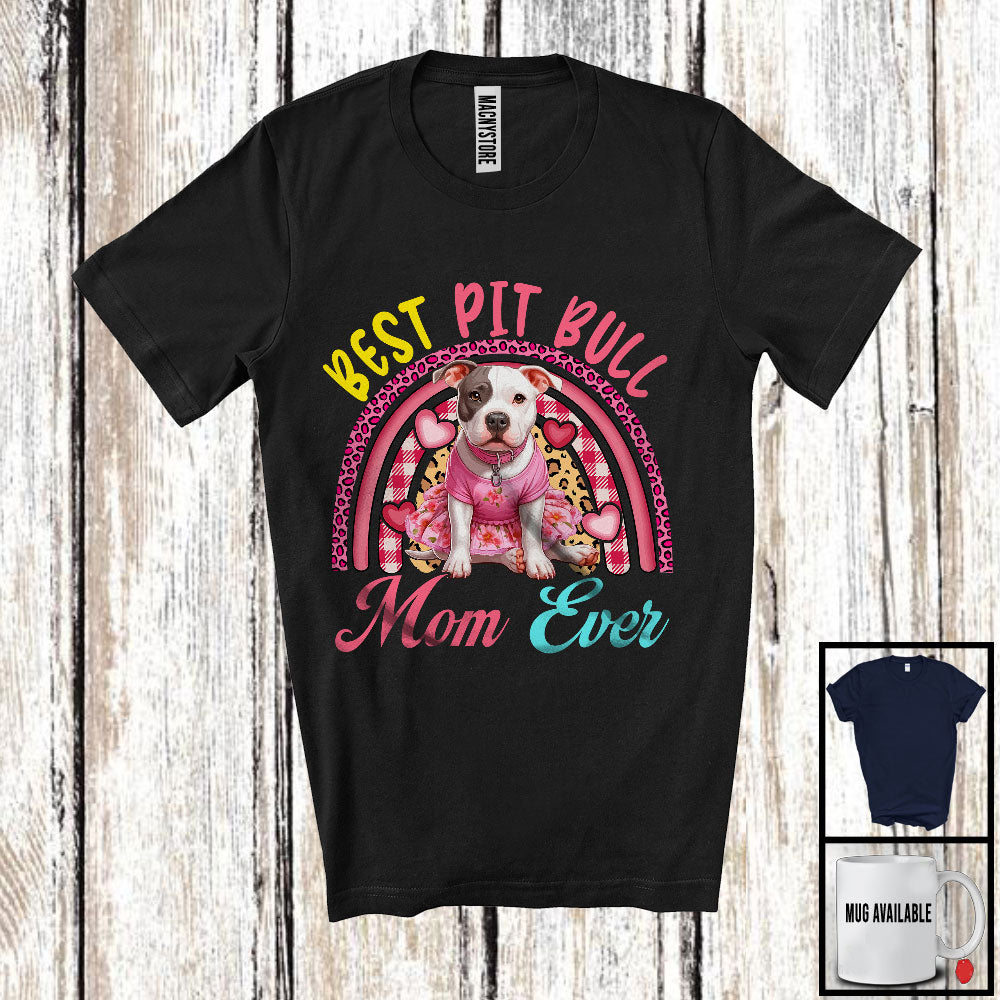 Meilleure maman Pit Bull de tous les temps, joli T-Shirt à carreaux léopard arc-en-ciel pour la fête des mères, groupe familial de fleurs