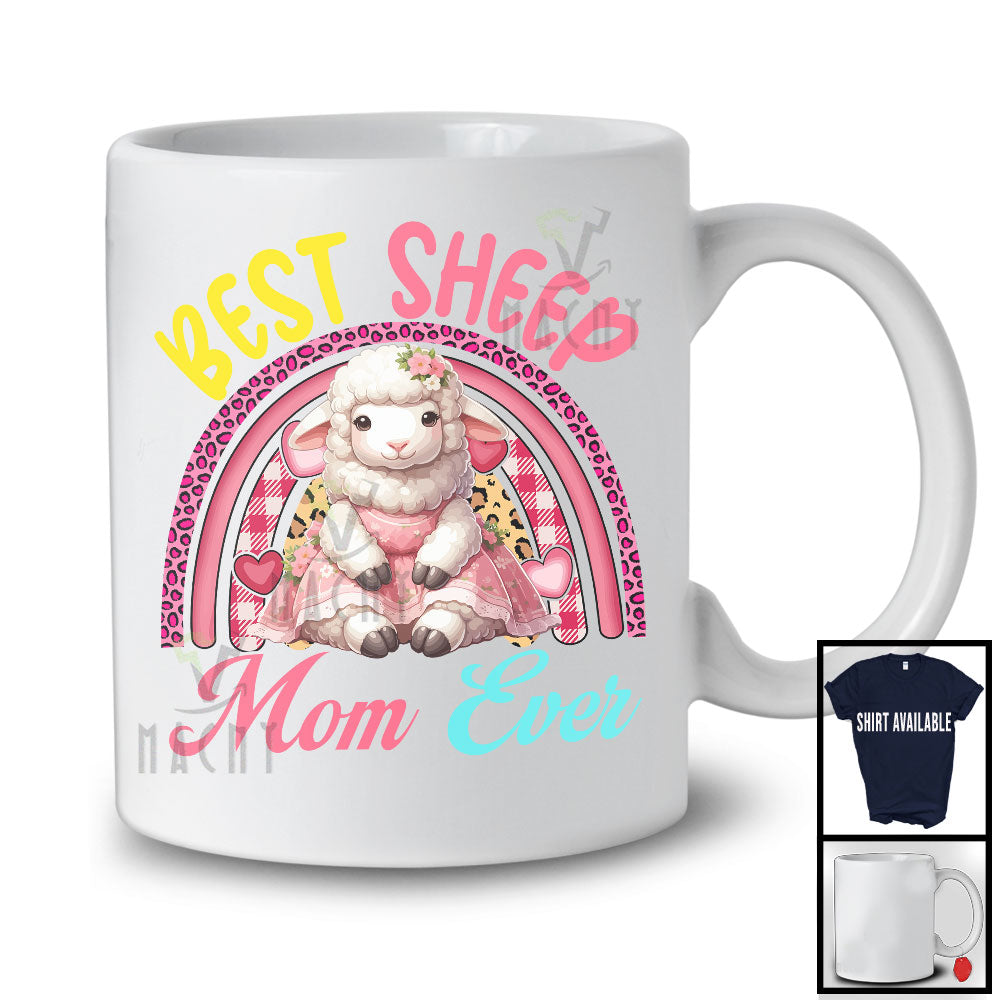Meilleure maman mouton de tous les temps, joli t-shirt léopard à carreaux arc-en-ciel pour la fête des mères, groupe familial de fleurs