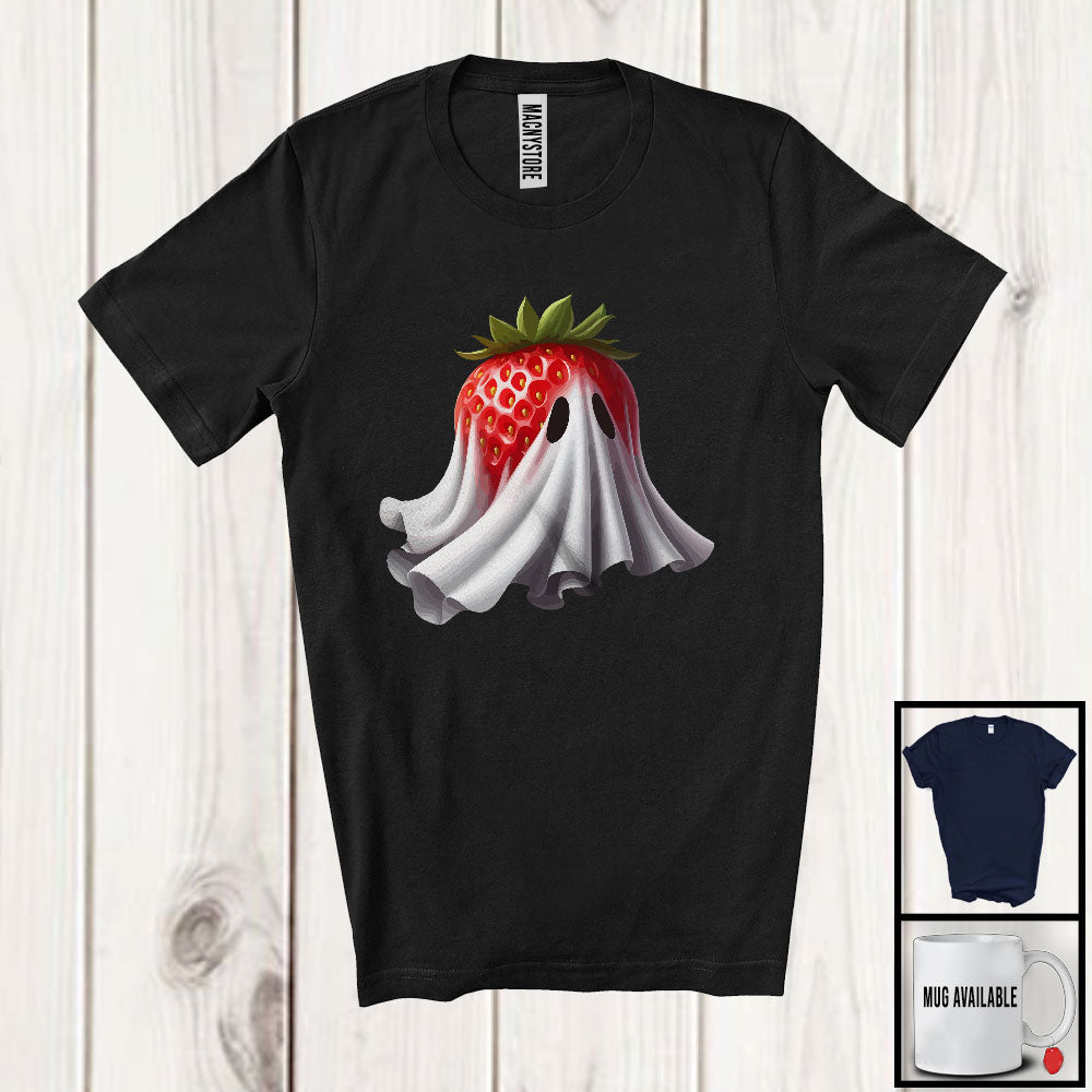 Boo Ghost Strawberry Costume, Amazing Halloween Fruit Lover, Matching Vegan Family Group T-Shirt. This cotton t-shirt is a durable staple product with a classic fit. One of the most popular items, it has a relaxed style made for everyday and casual wear.