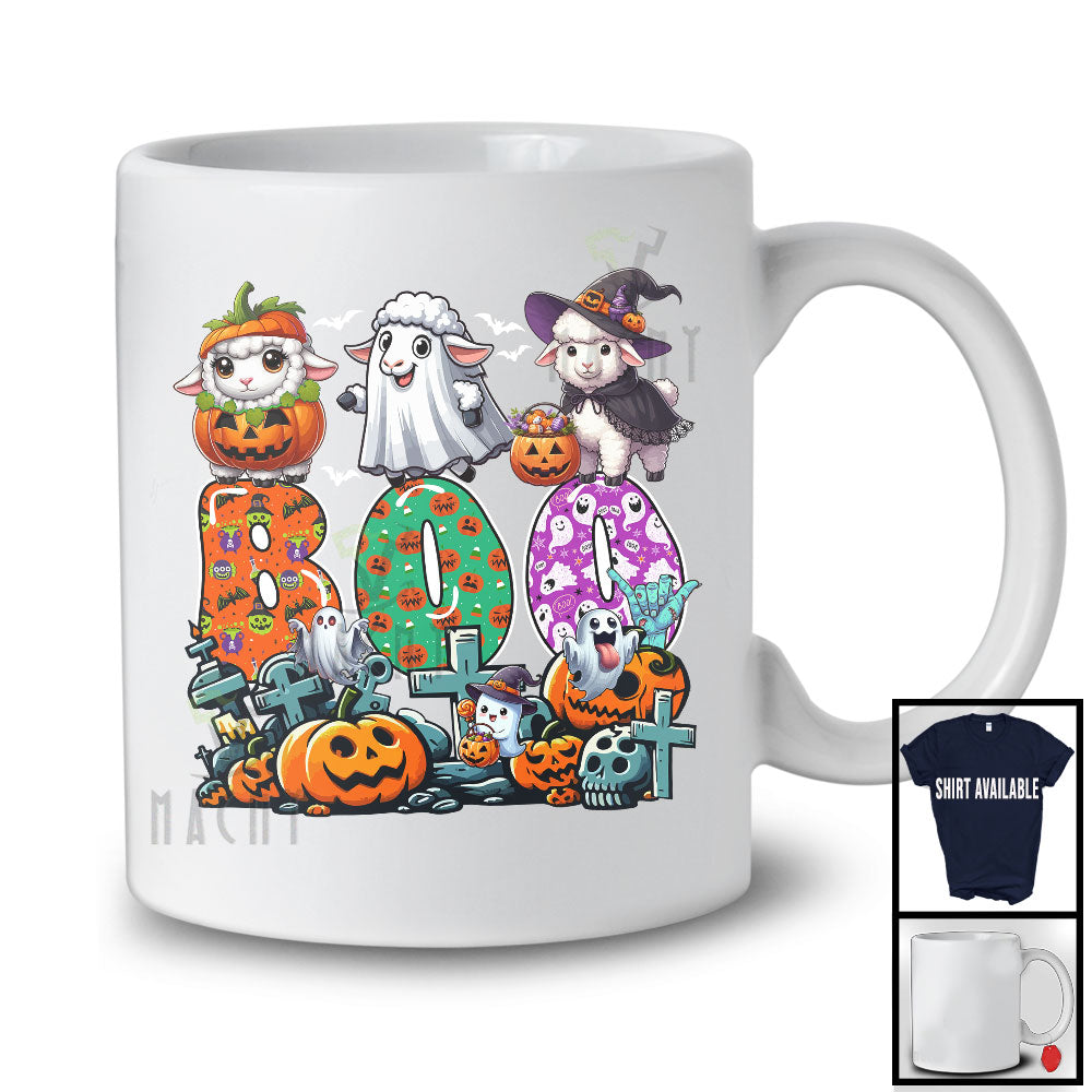 new MacnyStore - Boo; Spooky Halloween Three Pumpkin Mummy Witch Sheeps Owner; Family Group T-Shirt – Macnystore
