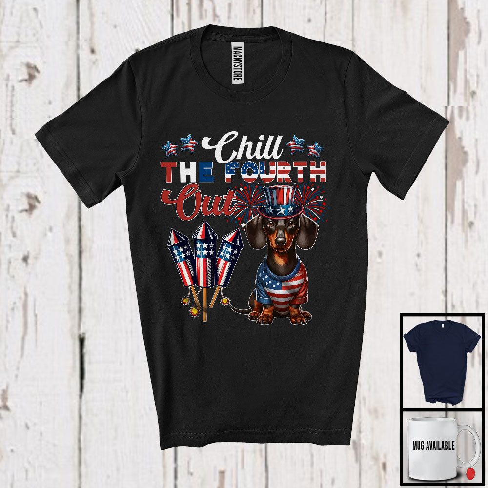 Chill The Fourth Out, Lovely 4th Of July American Flag Dachshund Fireworks, Proud Patriotic T-Shirt