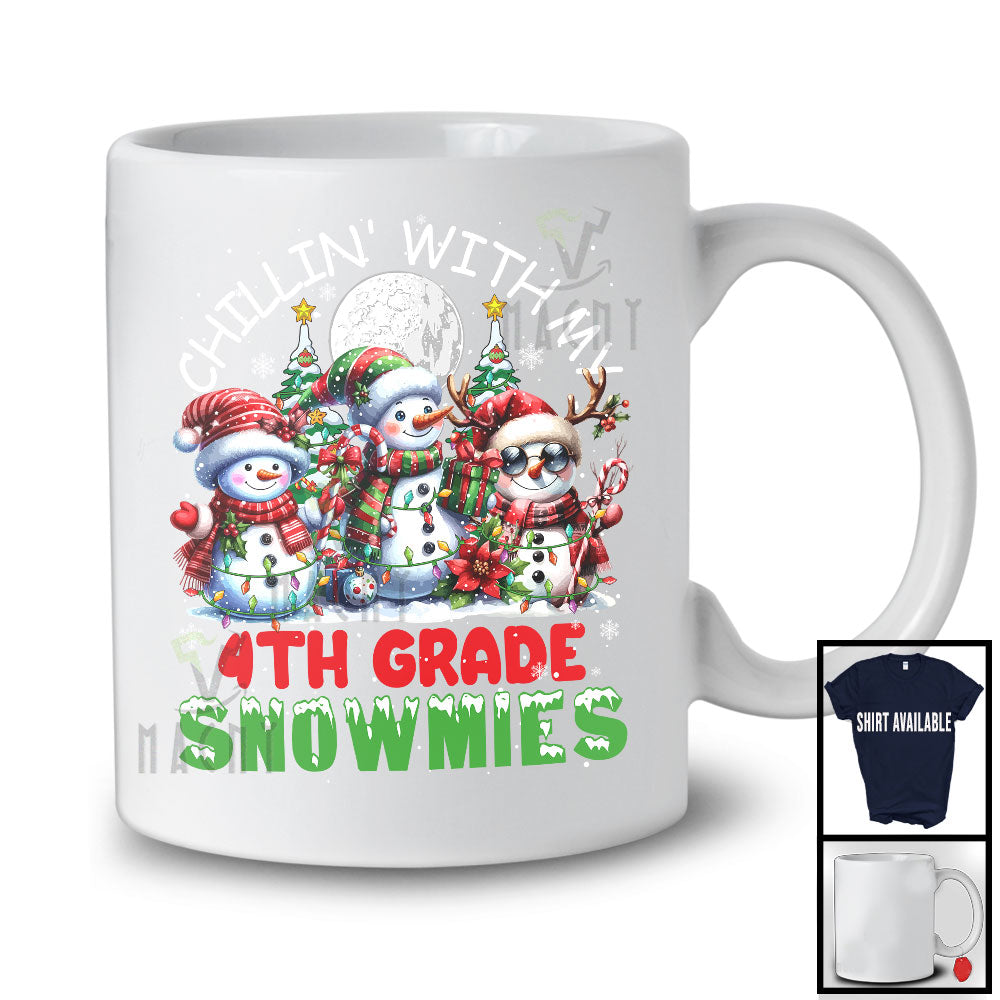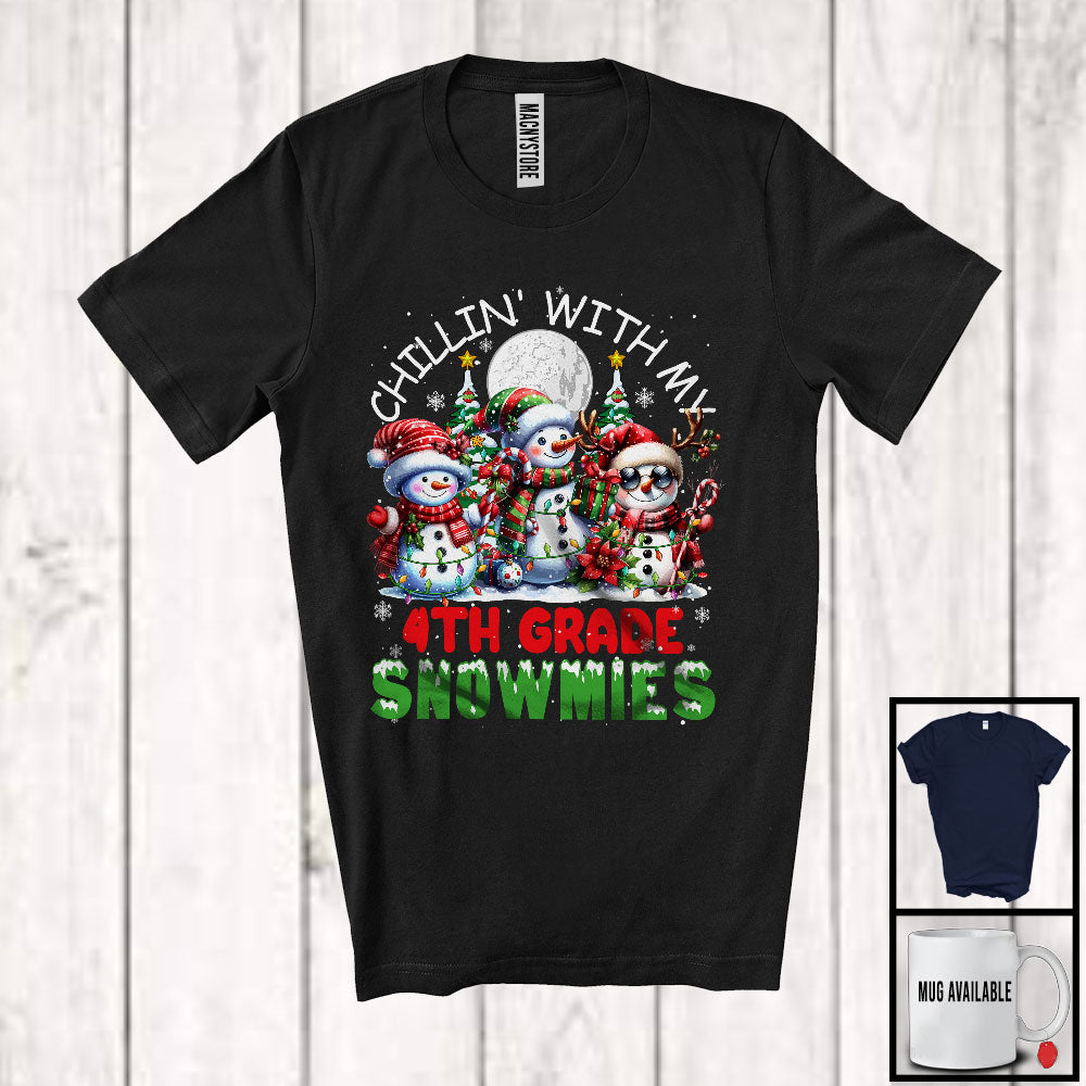• Chillin' With My 4th Grade Snowmies; Amazing Christmas Three Teacher Snowman; X-mas Group T-Shirt. This cotton t-shirt is a durable staple product with a classic fit. One of the most popular items, it has a relaxed style made for everyday and casual wear.