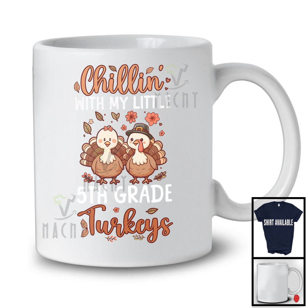 Chillin' With My Little 5th Grade Turkeys; Proud Thanksgiving Flowers Two Turkeys; Teacher Lover T-Shirt