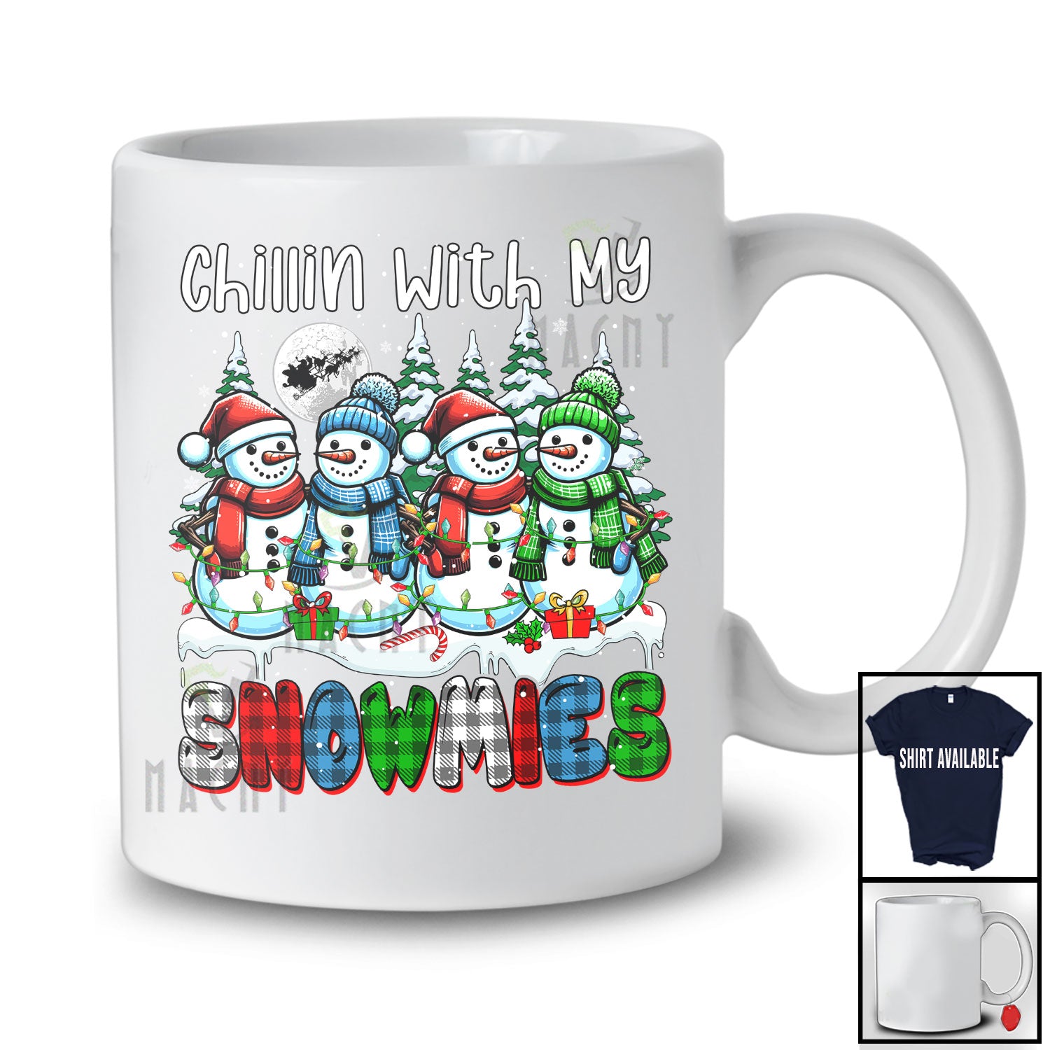 Chillin' With My Snowmies; Amusing Christmas Plaid Four Snowman; X-mas Family T-Shirt. This cotton t-shirt is a durable staple product with a classic fit. One of the most popular items, it has a relaxed style made for everyday and casual wear.