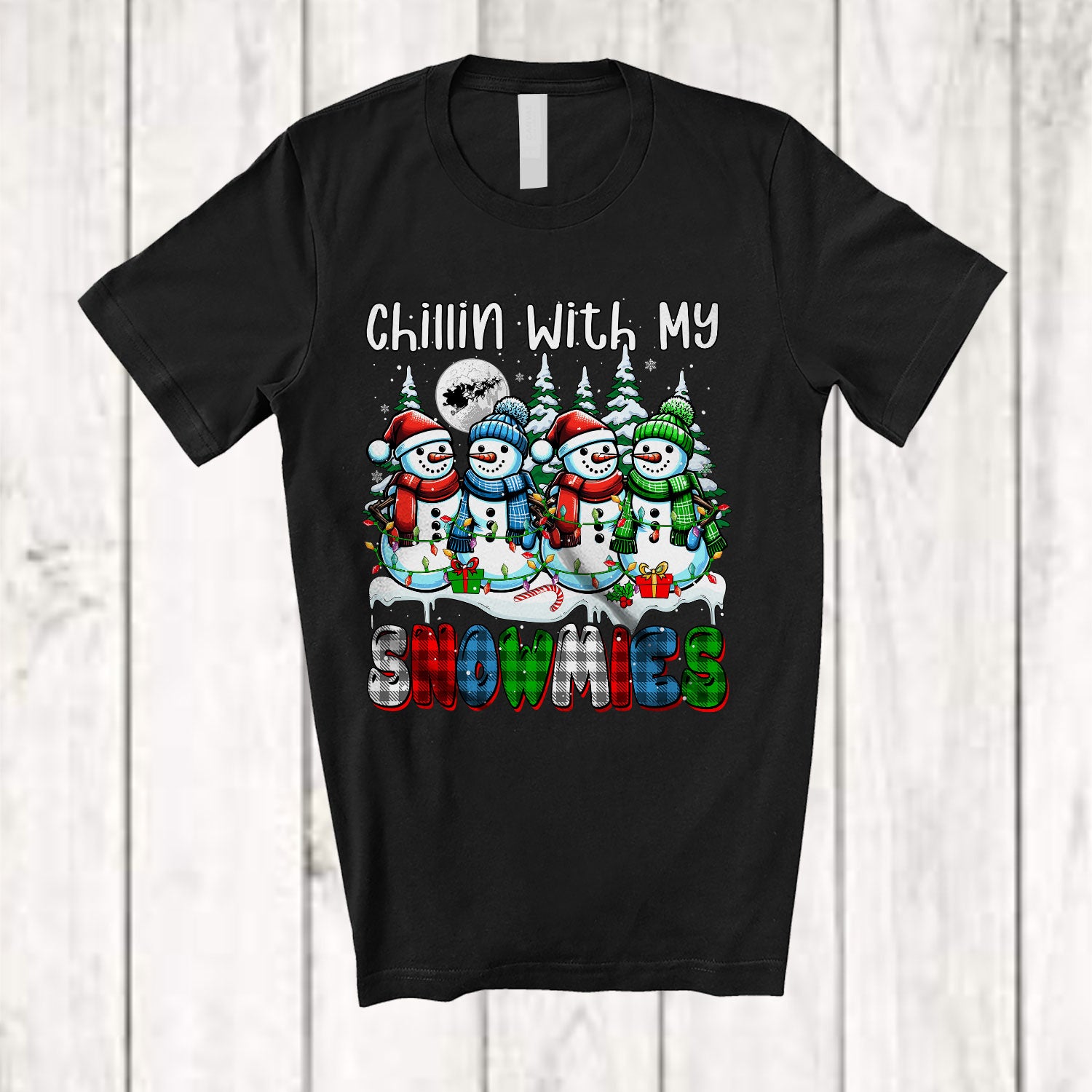 Chillin' With My Snowmies; Amusing Christmas Plaid Four Snowman; X-mas Family T-Shirt