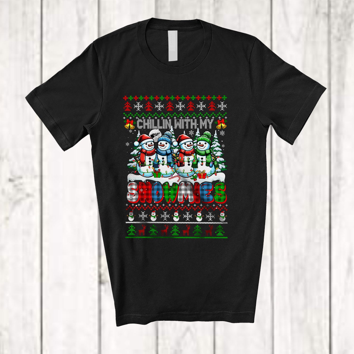new MacnyStore - Chillin' With My Snowmies; Amusing Christmas Sweater Plaid Four Snowman; X-mas Family T-Shirt – Macnystore