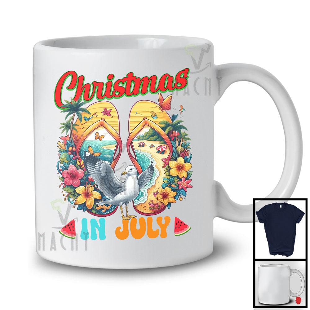Noël en juillet, joyeuses vacances d'été tongs mouette, fleurs amis groupe familial T-Shirt