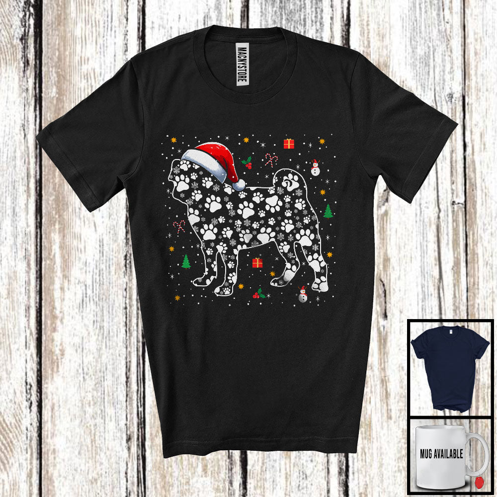 Christmas Santa Dachshund Paws Shape; Amazing X-mas Snowing Around Pug; Family Group T-Shirt