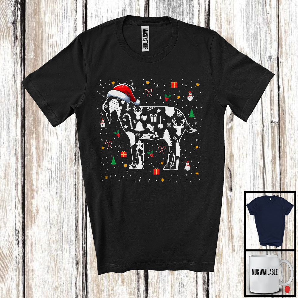 Christmas Santa Goat Paws Shape; Amazing X-mas Snowing Around Goat; Family Group T-Shirt
