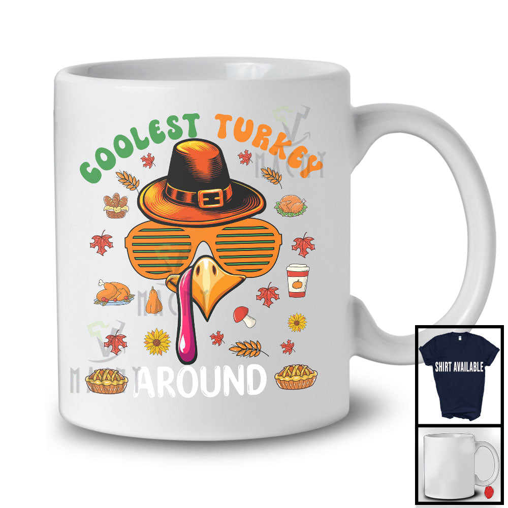 This Coolest Turkey Around, Awesome Thanksgiving Pilgrim Turkey Face Sunglasses, Fall Leaves T-Shirt is great idea gift for your family, friends in this birthday, christmas, mother's day, father's day, patrick's day or any holiday.