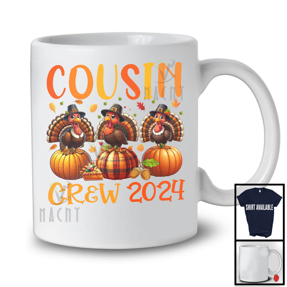 Cousin Crew 2024, Humorous Thanksgiving Three Turkey Pumpkin, Matching Family Group T-Shirt