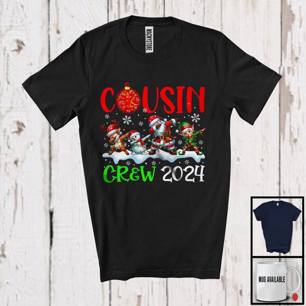 Cousin Crew 2024, Joyful Christmas Dabbing Reindeer Snowman Santa ELF, X-mas Family T-Shirt