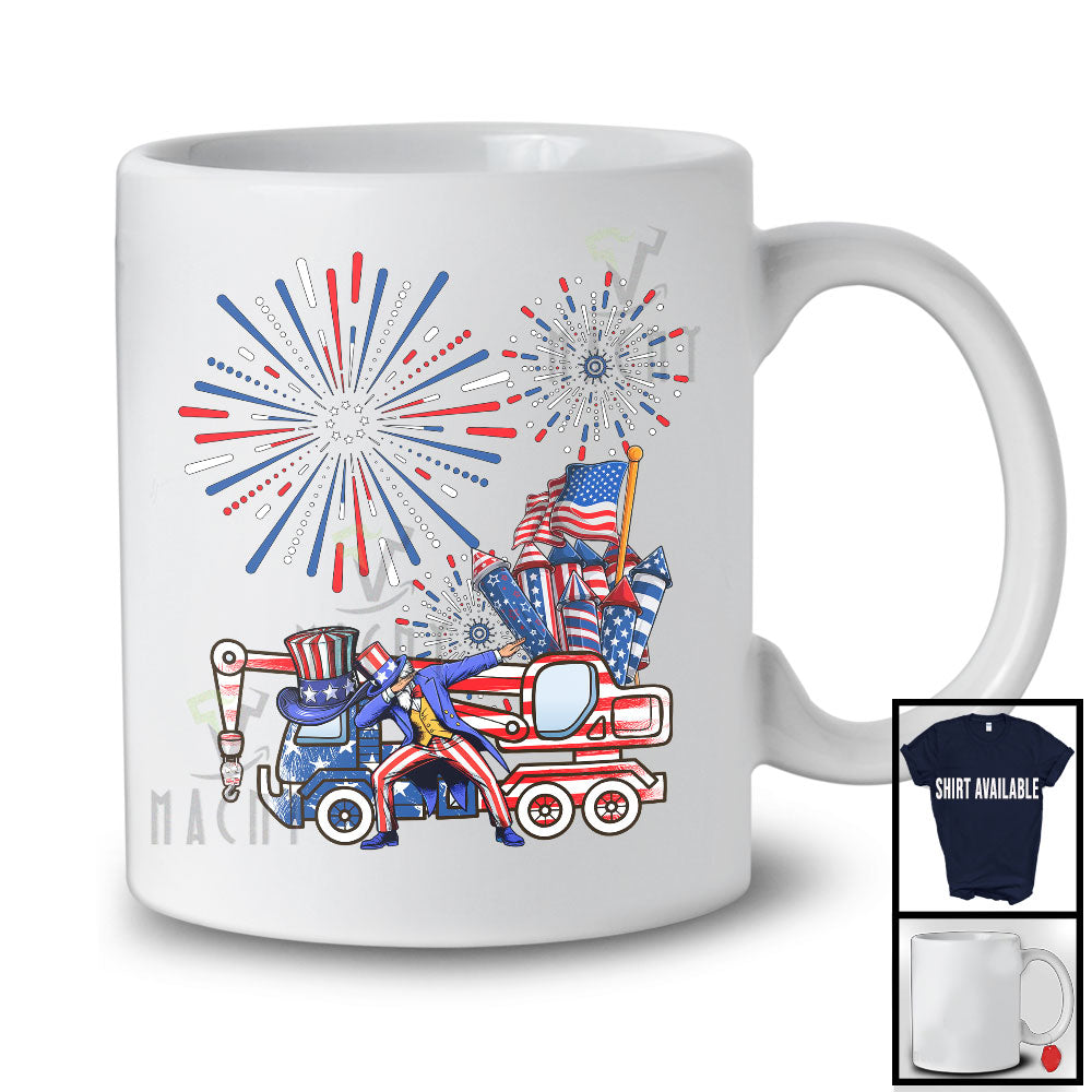 Crane Truck Construction Driver, Proud 4th Of July USA Flag Man Dabbing, Firecrackers Patriotic T-Shirt
