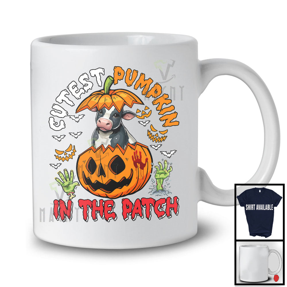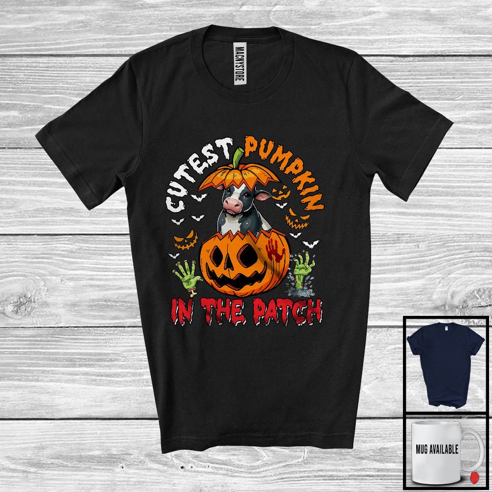 This Cutest Pumpkin In The Patch; Humorous Halloween Costume Cow In Pumpkin; Animal Lover T-Shirt is great idea gift for your family, friends in this birthday, christmas, mother's day, father's day, patrick's day or any holiday.