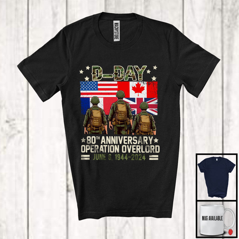 D-Day 80th Anniversary Operation Overlord, Proud Countries Flag Lover, Soldiers Veteran Group T-Shirt