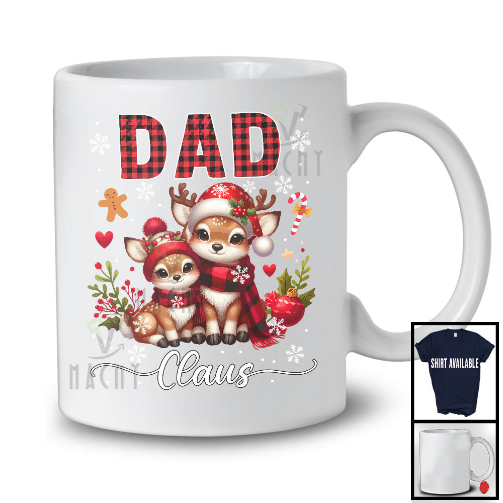 • Dad Claus; Lovely Christmas Red Plaid Reindeer Lover; X-mas Snowing Family Group T-Shirt. This cotton t-shirt is a durable staple product with a classic fit. One of the most popular items, it has a relaxed style made for everyday and casual wear.