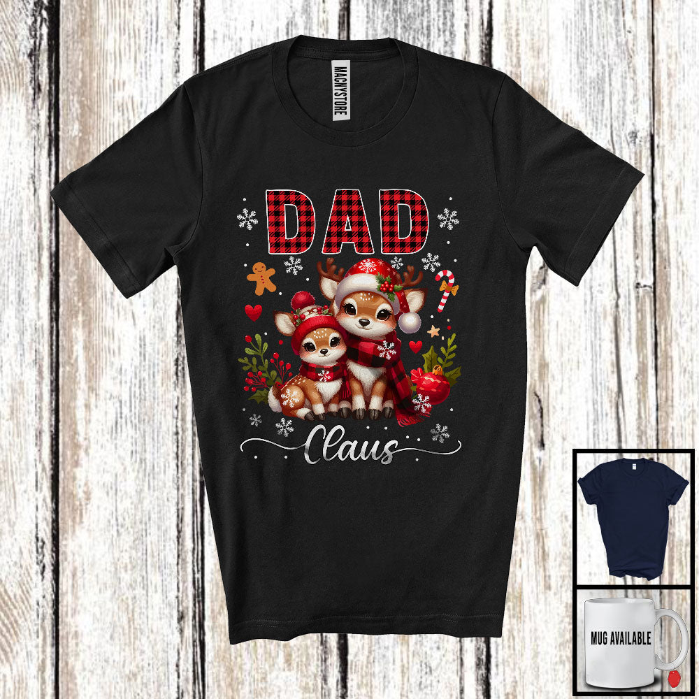 new MacnyStore - Dad Claus; Lovely Christmas Red Plaid Reindeer Lover; X-mas Snowing Family Group T-Shirt – Macnystore